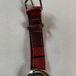 Working Da Vanci Watch with Red Plaid Bands and Brand New Battery! It sports red and black plaid watch bands, silver tone accents with white face. The back is stainless steel and is Japan Movement. Quartz. The last owner didn’t store it properly so the bands don’t sit right unless you’re wearing it. Storing it flat like I am will fix the issue over time. Please see all the pictures for condition.