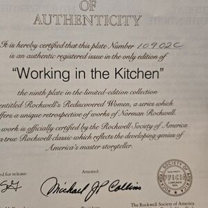 "Working In The Kitchen" Commenmorative Plate. In Box.