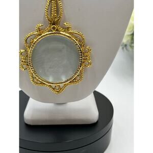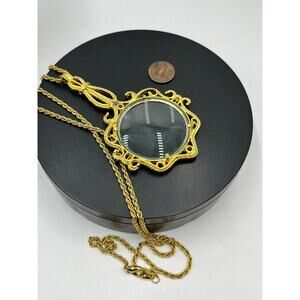 Working Loupe Ornate Magnifying Glass Rope Chain Long Pendant Necklace
