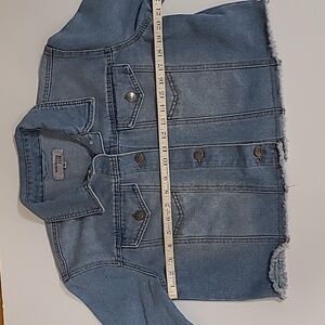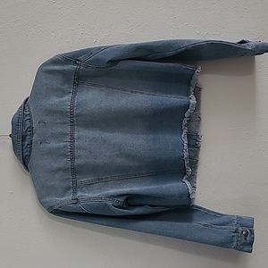 Cropped denim jacket with frayed edge