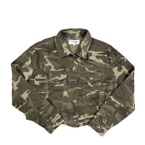 Working Title Denim Camo Frayed Crop Jacket Size Medium