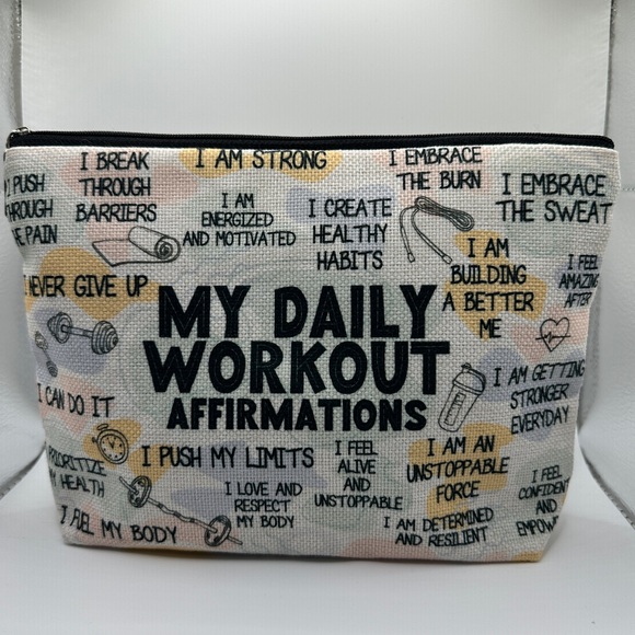 Multiple use pouch with motivational workout affirmations. Perfect for gym essentials.