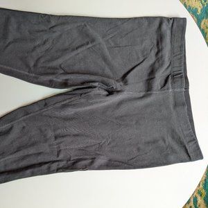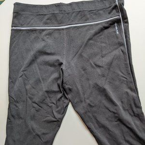 Feel like cotton, but is a high performance poly blend. Cute and functional grey mesh inset channels keep you cool. Mid rise and no pockets on this style. In excellent used condition with no flaws.