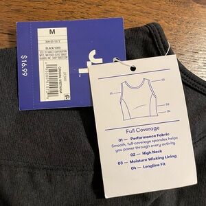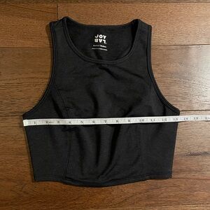 High neck. Cropped. I’m a small/34B and this fits. M15
