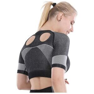Workout Crop Top for Women, Seamless Tank Top Black/Grey Size Small