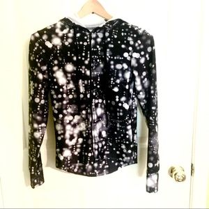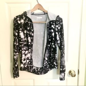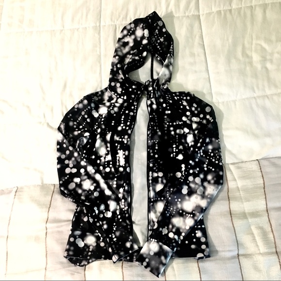 Rue 21 Sport jacket. Spandex type material and very cool refreshing feeling. Great for workouts and very light. No stains or tears and only worn a few times.