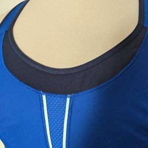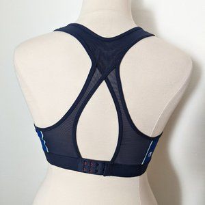 Lightweight fabric with a power mesh base keeps you cool! No padding or underwire in this style. Over the head entry with 5 row 2 hook adjustable back, I never ended up wearing this one, so it has to go! Perfect for medium intensity workouts such as walking, yoga, weight lifting, Pilates. I cut the tags out, but it is an XL = 38D to 40D size range.
