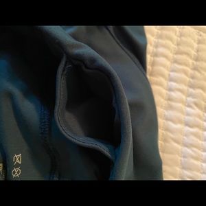 Dark hunter green, size large workout pants. There is a pocket on the front inside waist. Pet free, smoke free home, EUC