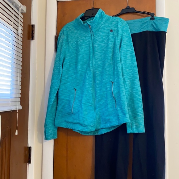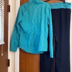 Aries lightweight workout set, fairly worn, blue and black, jogging set, back butt cell phone pocket