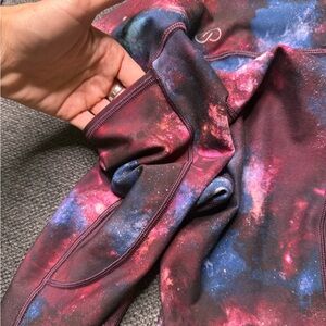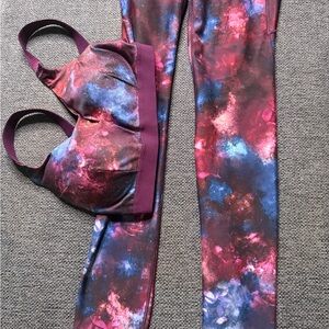 Vibrant sports bra and leggings set with a galaxy print. Features shades of purple, pink, and blue. Colorful Galaxy Carrie Underwood Workout Set. Size XS. Never worn. Still brand new. I popped the tags before trying it on. Smoke free and pet free home. Price is not final, make an offer.