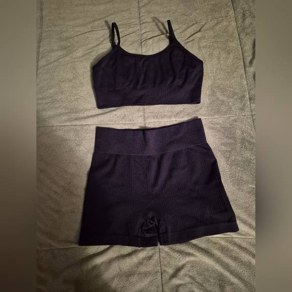 Workout shorts and sports bra in black size medium. Simple, comfortable, and flattering!