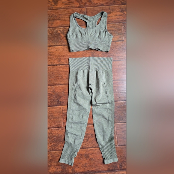 Olive workout set with super cute details & booty enhancing detail. Soft and durable for all-day comfort. Top & Bottom size L