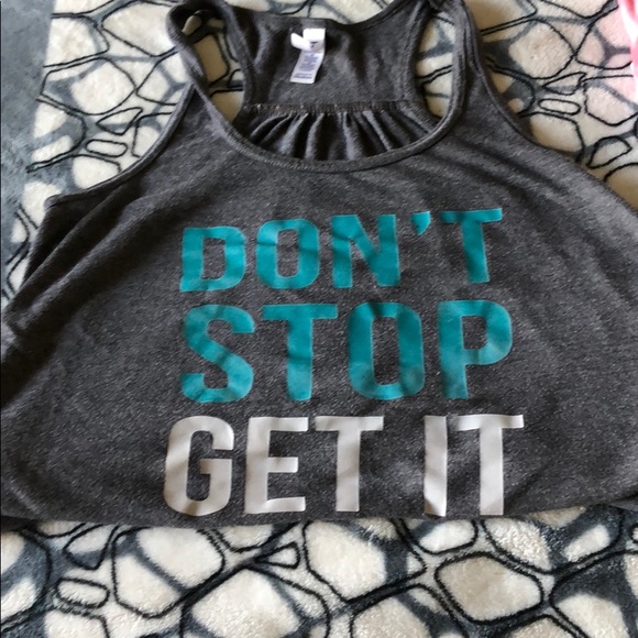 Cute workout tank that makes you ready to work with a saying like, “Don’t Stop Get It Get It” 💕