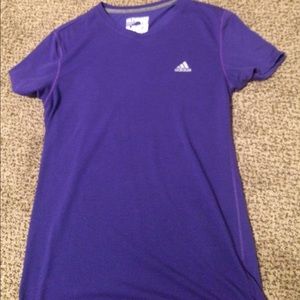 Purple Adidas workout tee very good condition been worn just a couple of times comfortable material practically new just didn't like that shade on me after a couple of wears