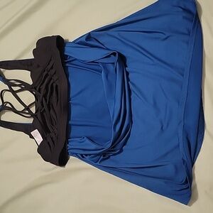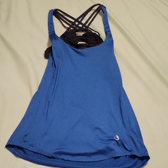 Deep Blue workout tank with attached strapped bra. Size L. lightly worn