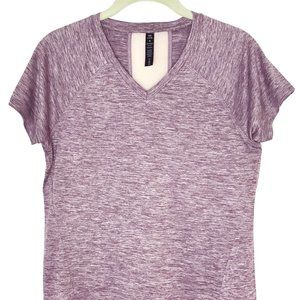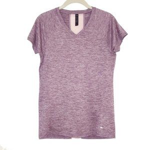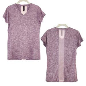 Super cute vintage rose spacedye short sleeve performance top, slim fit.