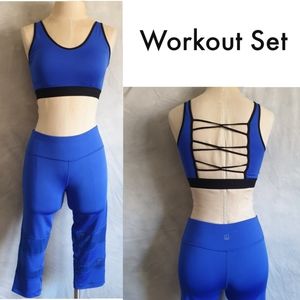Workout Yoga Set in Colbolt Blue with Sports Bra & Cropped Mid-Rise Leggings Md