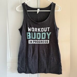 Workout buddy in progress maternity tank top shirt Large graphic tank