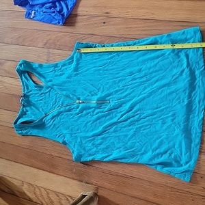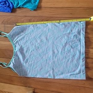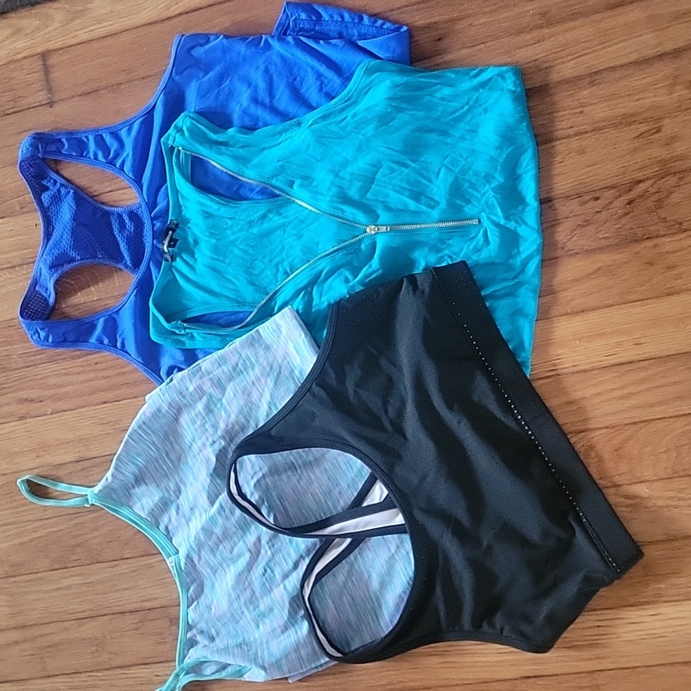 You are getting 1 stripped tank top 1 zip up muscle shirt 1 blue Danskin workout shirt 1 sports bra