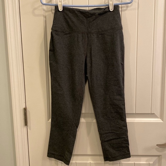 Grey, never worn workout capri bottoms. Smoke free home. Pocket for keys/phone