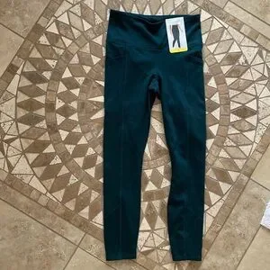 Deep forest green workout pants with side pockets