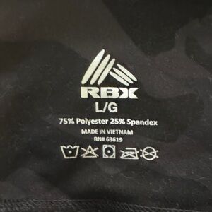 Stylish charcoal heather GAIAM and dark green army print RBX workout leggings, both in great condition and size large