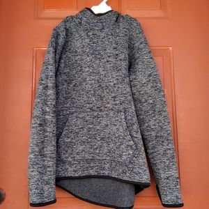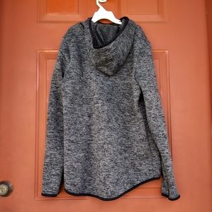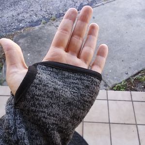 Grey jacket (thicker) with kangaroo pocket with thumb hole in sleeves
