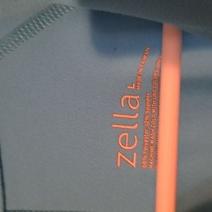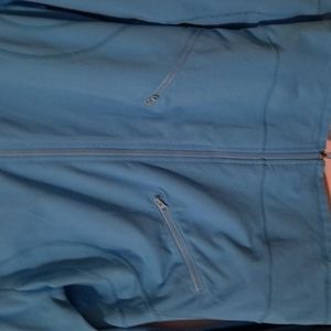 this is a zella light blue or aqua color workout jacket in good used condition full zip with pockets on each side and mesh at the top right side shoulder