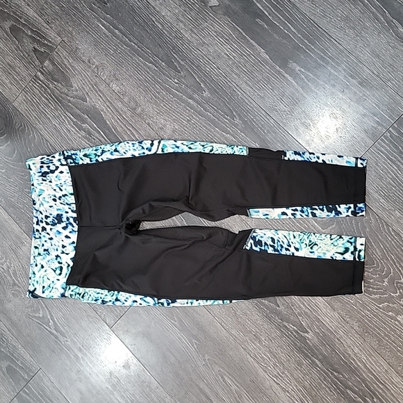 Lularoe workout leggings 3/4 length size medium with blue green and black cheeta print also they have little peekaboo cutouts and pockets!!