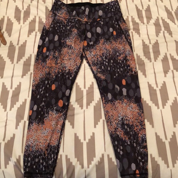 Orange and black workout pants.