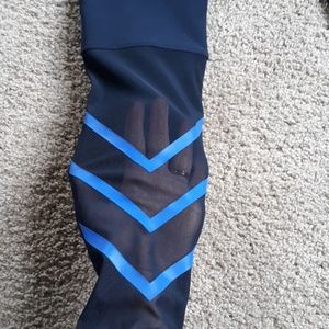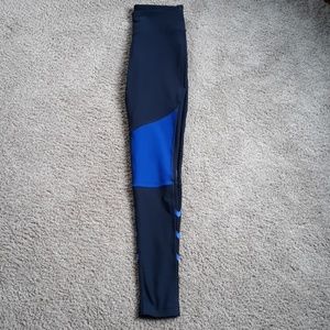 Navy and royal blue worth out pants with mesh on the back of legs. Xs NWOT