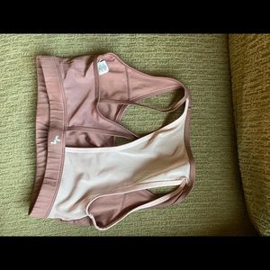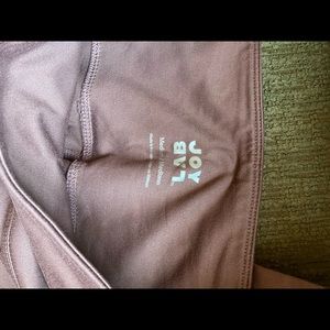 Joy Lab workout set. Sports bra has a super cool back design with a mesh patch; leggings have side pockets and partial mesh backing. Color is a light plum/dusty rose!