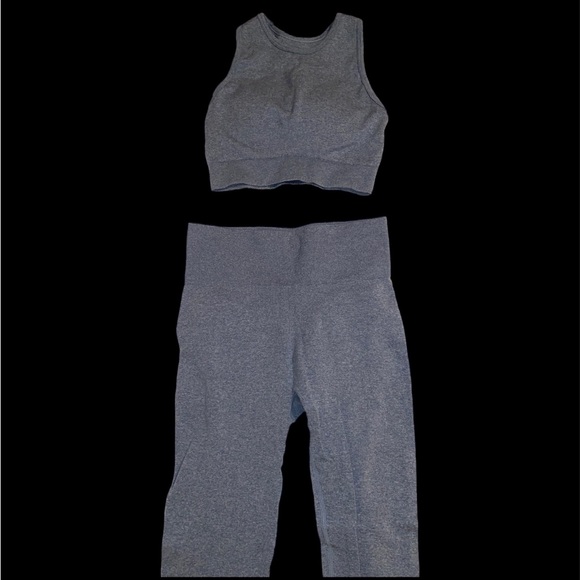 Light blue sports bra and leggings
