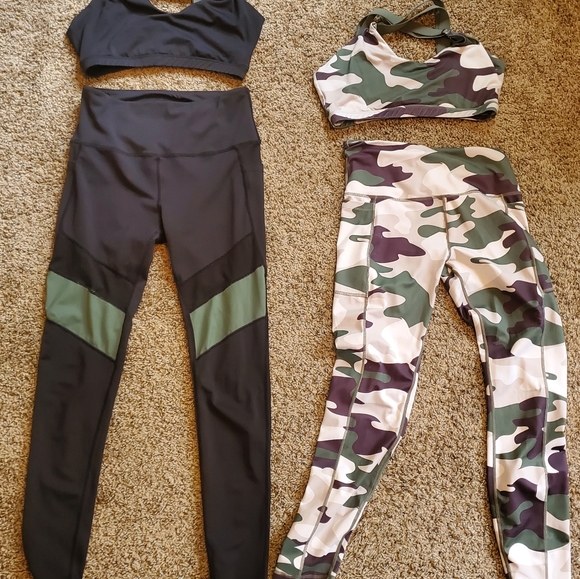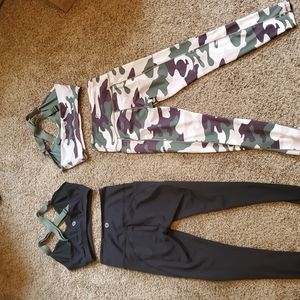 Actice boots brand, cameo set, black with green set. Low/Medium impact sports bra and high-waisted leggings.