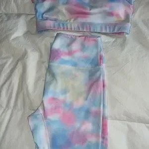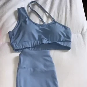 Fun workout sets, leggings and sports bras. Fun colors high waisted fit. Bundle of 3 separate sets. Pink sets never worn, blue set worn once