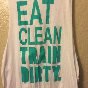 Eat clean, Train dirty! Nice light workout shirt, sides are cut out, this is exactly how I bought it.