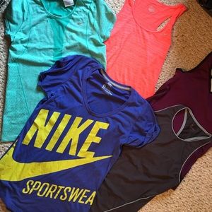5 work out shirts and tanks from Nike gap body and fila sizes are XS, S and medium.
