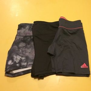Grey and pink adidas small, black xersion medium, grey and black champion small all are fitted and brand new!