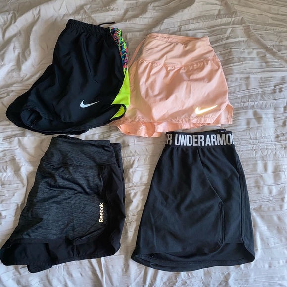 Nike, Under Armour, and Reebok. All size small the pink are a medium but fit like a small. All lightly worn and great condition!