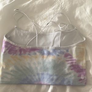 Tie dye workout tank top. Small stain on the straps. Very stretchy and comfortable