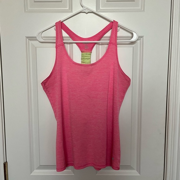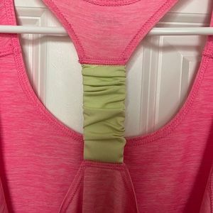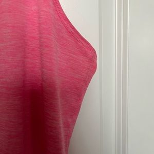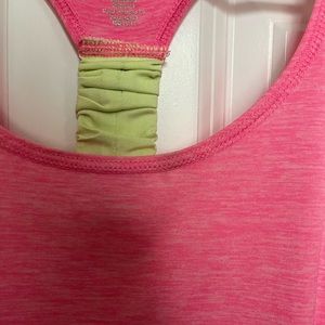 Has a faint mark on the neckline and faint discoloration by the under arms (as shown in the last few photos)