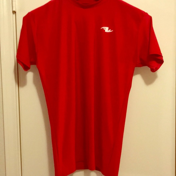 Bright red moisture wicking and breathable workout tee.