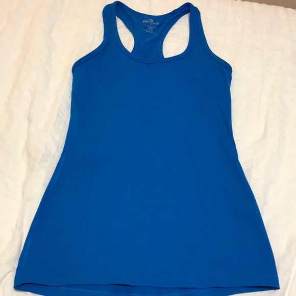 Beautiful blue colored workout top. Great fit, length and durability. Doesn’t show sweat!