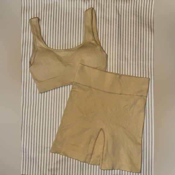 The perfect light yellow/beige workout set!! Love this for hot girl walks, pilates, or just as athleisure ✨