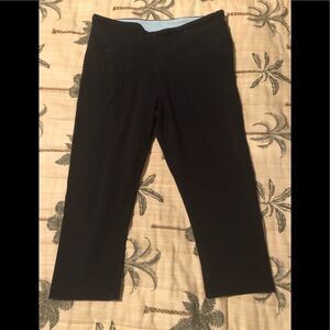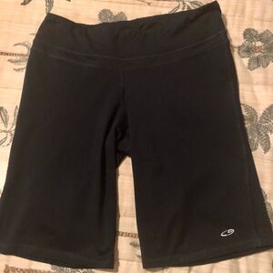 3 different length leggings in size medium. Long, medium and short. They have light wear. It’s hard to read the label, the short one is by Champion. They all are a cotton blend and are stretchy. The shirt is by Head and is in a size small but is roomy like a medium. It’s a mix of cotton, polyester and spandex. Is in great condition.