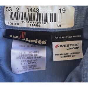 Workrite Men's FR Long Sleeve Button Up Flame Resistant Shirt Size 42R.