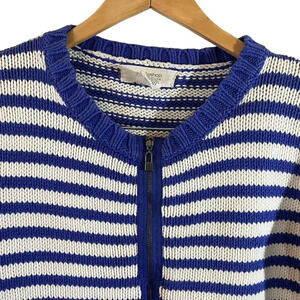 Workshop Andrea Jovine Chunky Knit Full Zip Sweater Medium Purple White Striped