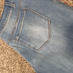 Chic blue skinny jeans with delicate side embroidery. Ideal for casual outings.