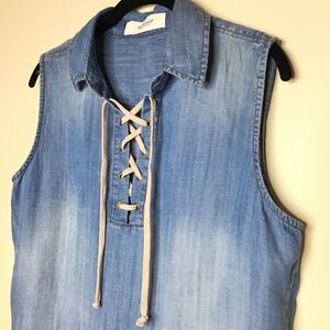 Workshop Republic Clothing Sz M Chambray lace up tank Gently used condition