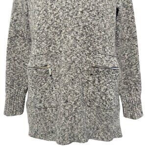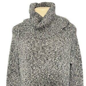 Workshop Republic Clothing Speckled Gray Cowl Neck Turtleneck Sweater Soft Cozy Zip Pocket Top